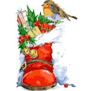 Картина за номерами Strateg ПРЕМІУМ Чобіт з подарунками розміром 30х40 см (SS6828)