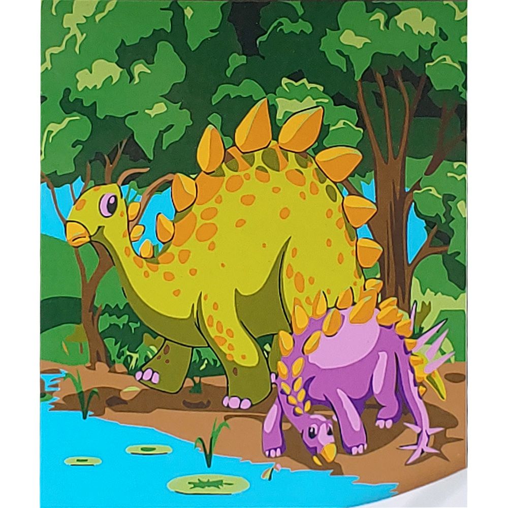 Картина за номерами Strateg ПРЕМІУМ Динозаври коло берега з лаком та з рівнем розміром 30х30 см (ES172)