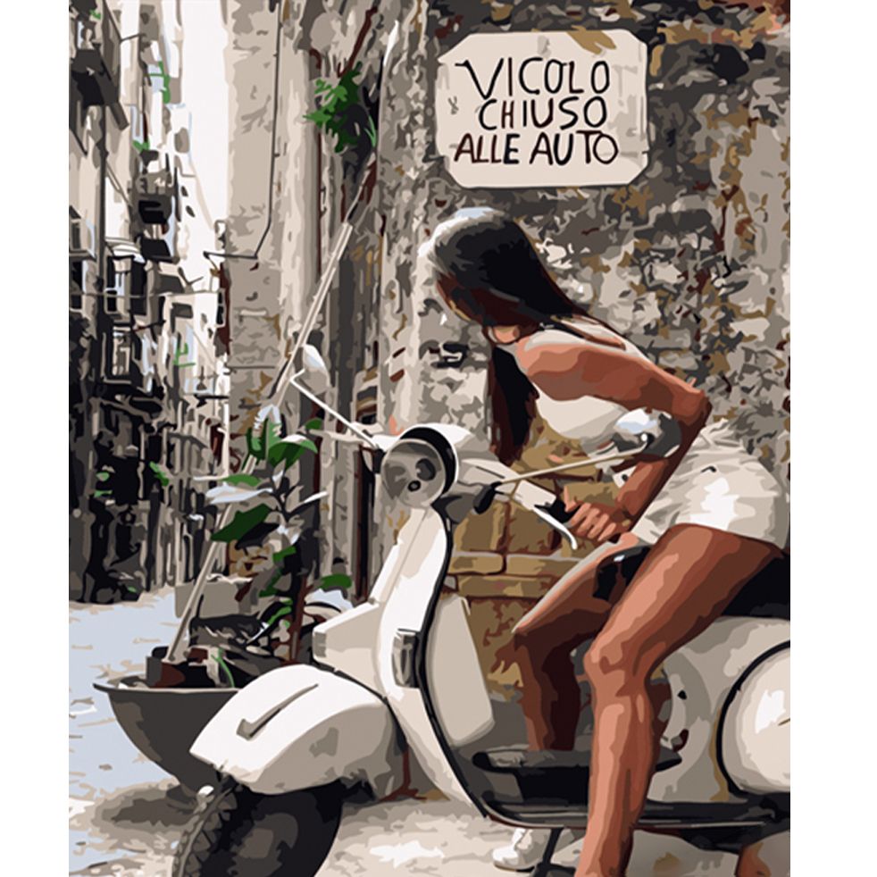 Картина за номерами Strateg ПРЕМІУМ Дівчина на мопеді розміром 40х50 см (HH079)