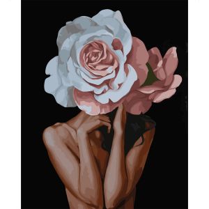 Картина за номерами Strateg ПРЕМІУМ Дівчина-піон з лаком розміром 40х50 см (VA-3090)