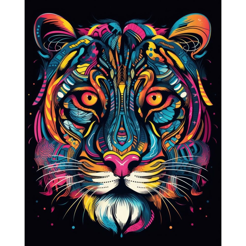 Картина за номерами Strateg ПРЕМІУМ Фантастичний тигр на чорному фоні розміром 40х40 см (AV4040-13)
