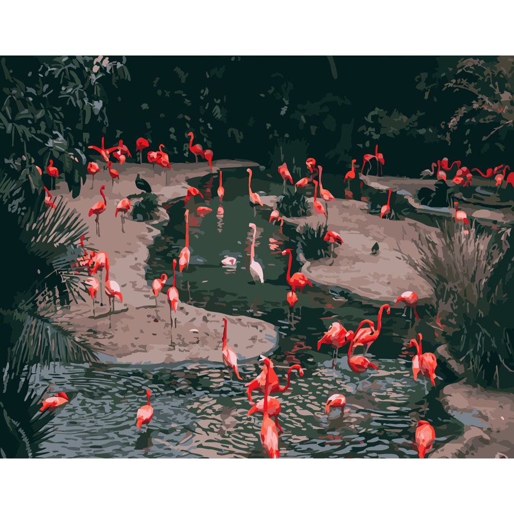 Картина за номерами Strateg ПРЕМІУМ Фламінго на водопої розміром 40х50 см (GS230)