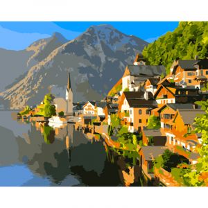 Картина за номерами Strateg ПРЕМІУМ Гірське містечко розміром 40х50 см (GS1185)