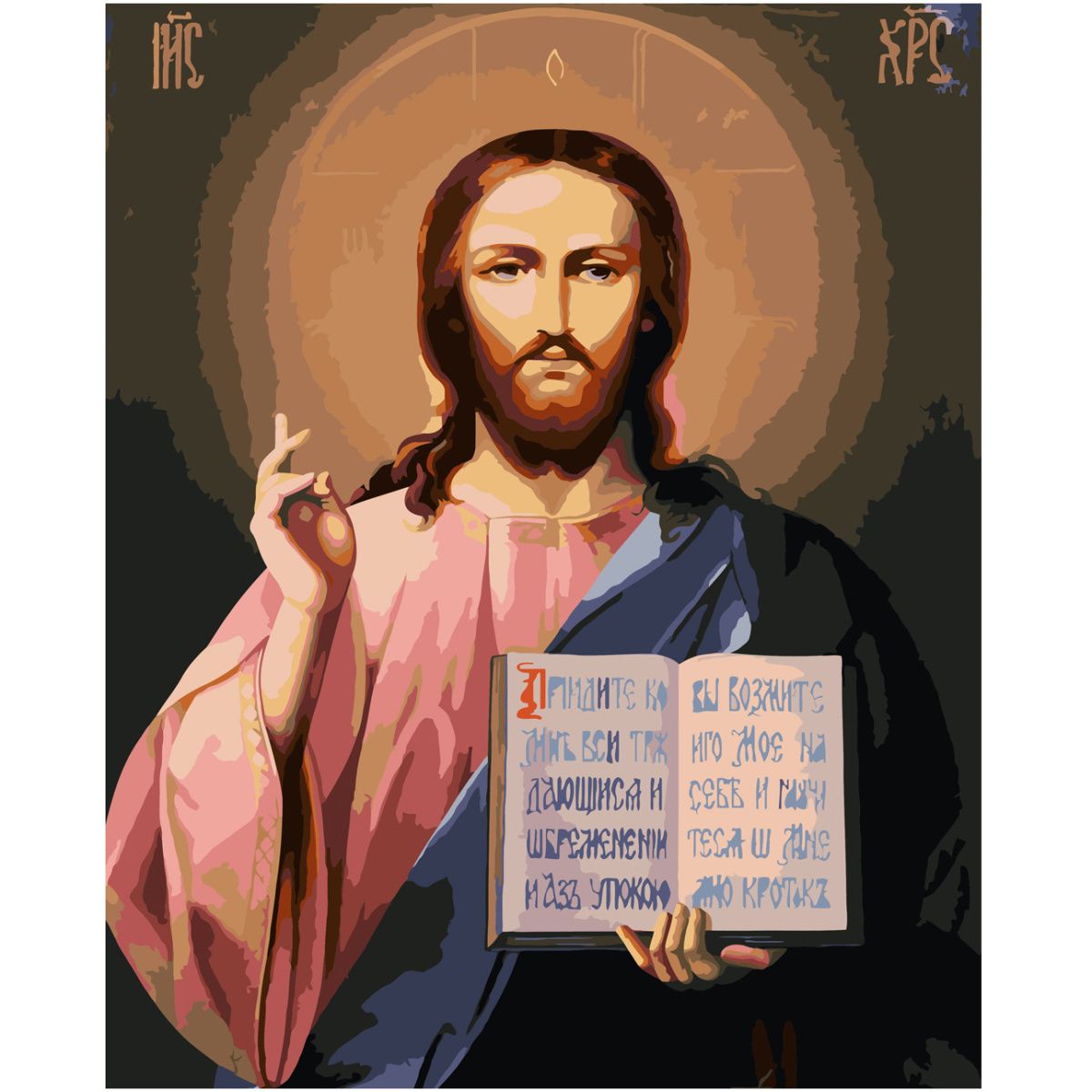Картина за номерами Strateg ПРЕМІУМ Ісус Христос - Спаситель з лаком розміром 40х50 см SY6692