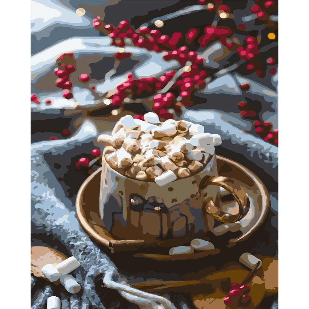 Картина за номерами Strateg ПРЕМІУМ Какао з маршмелоу розміром 40х50 см (GS489)