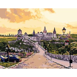 Картина за номерами Strateg ПРЕМІУМ Каменець-Подільський замок при заході сонця з лаком розміром 30х40 см (SS-6585)