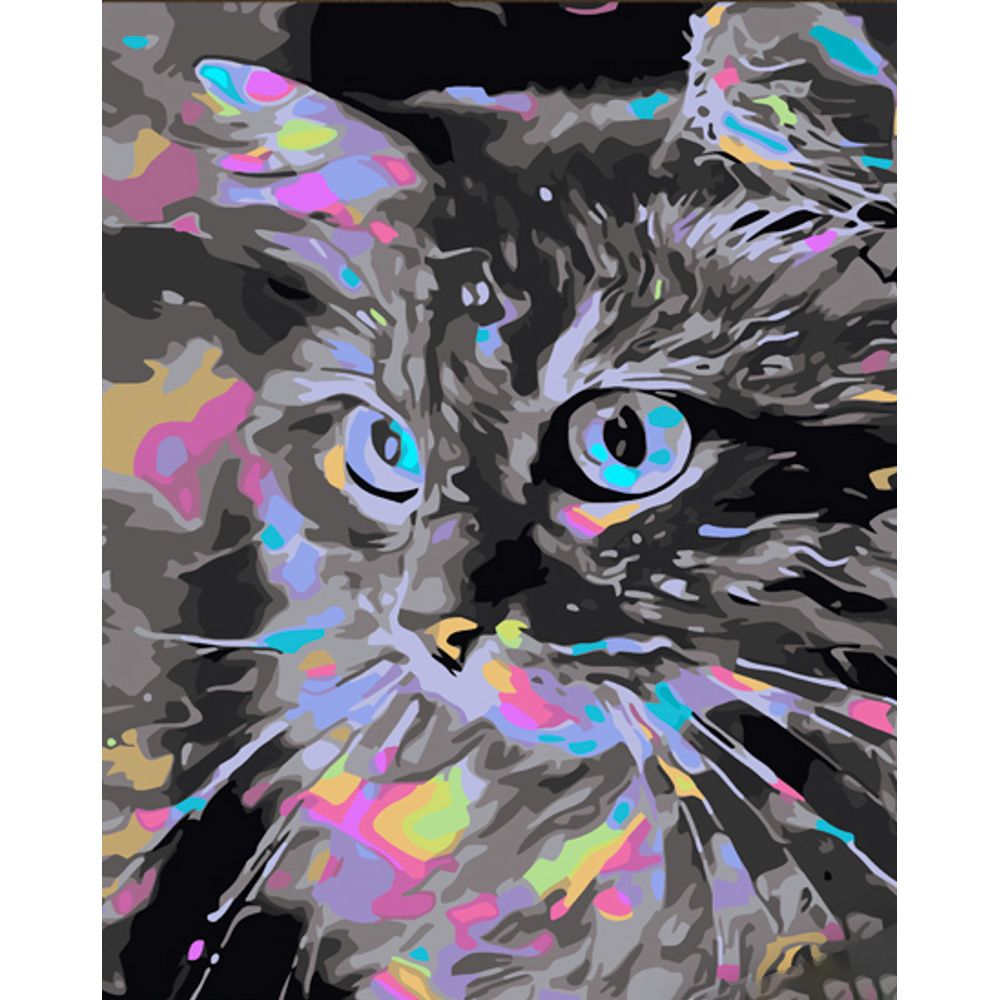 Картина за номерами Strateg ПРЕМІУМ Кішка в мерехтіння з лаком розміром 30х40 см (SS6777)