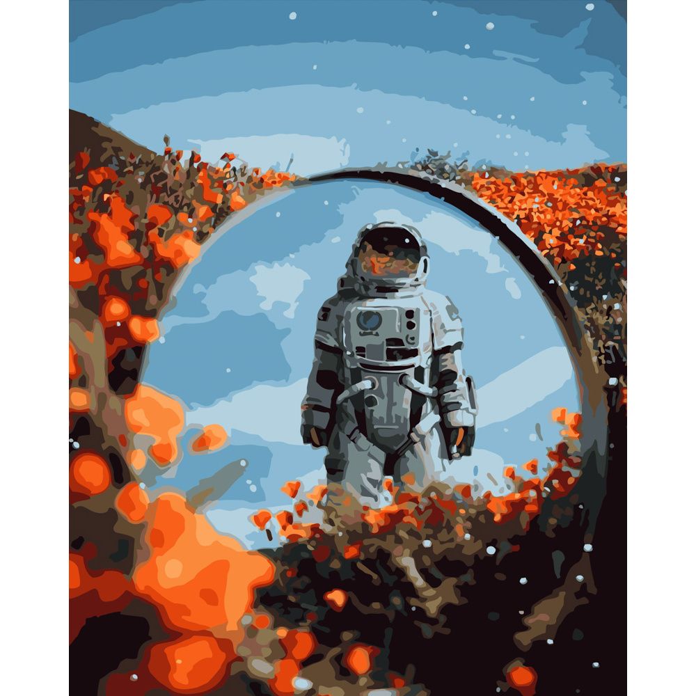 Картина за номерами Strateg ПРЕМІУМ Космонавт у відображенні розміром 40х50 см (GS499)