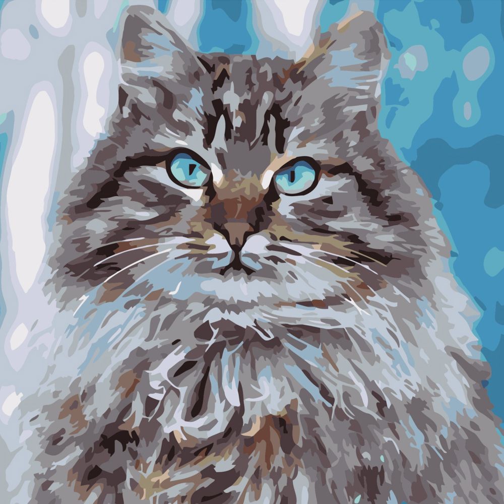 Картина за номерами Strateg ПРЕМІУМ Котик з блакитними очима розміром 40х40 см (SK046)