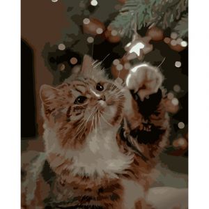 Картина за номерами Strateg ПРЕМІУМ Котик з ялинкою розміром 40х50 см (GS688)