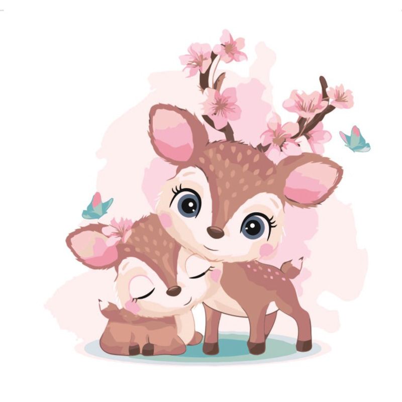Картина за номерами Strateg ПРЕМІУМ Крихітки-оленята з лаком розміром 30х30 см ES002