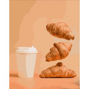 Картина за номерами Strateg ПРЕМІУМ Круасани та кава з собою розміром 40х50 см (DY336)