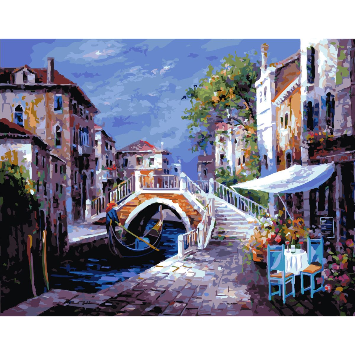 Картина за номерами Strateg ПРЕМІУМ Куточок Венеції з лаком розміром 40х50 см SY6625