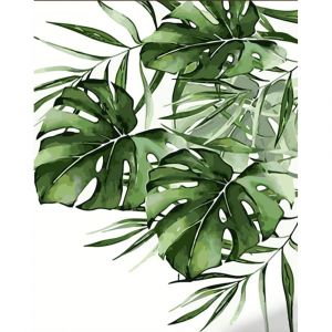 Картина за номерами Strateg ПРЕМІУМ Листя монстери з лаком розміром 30х40 см (SS6766)