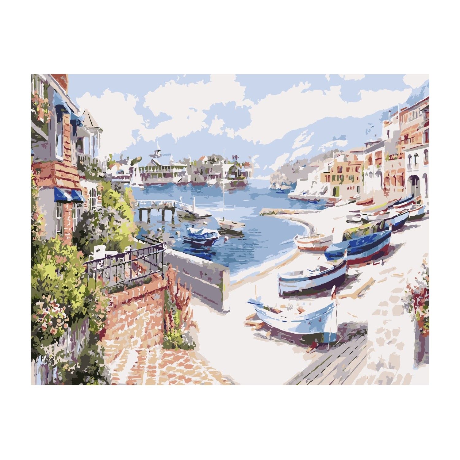 Картина за номерами Strateg ПРЕМІУМ Літній міський пейзаж з лаком розміром 40х50 см VA-0231