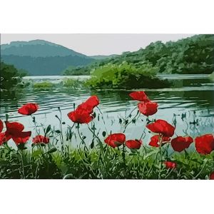 Картина за номерами Strateg ПРЕМІУМ Маки біля води з лаком розміром 30х40 см (SS-6531)