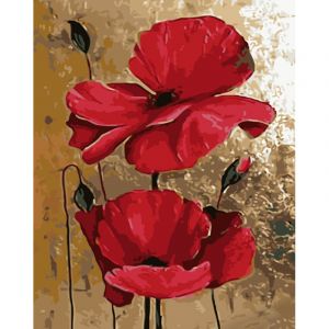 Картина за номерами Strateg ПРЕМІУМ Маки на золотому фоні з лаком та з рівнем розміром 40х50 см (GS1432)
