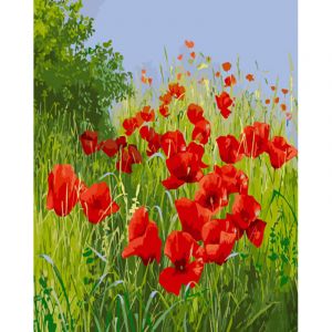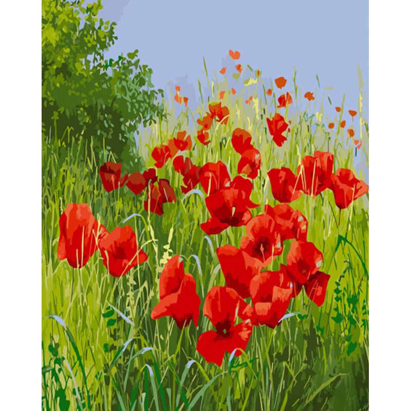 Картина за номерами Strateg ПРЕМІУМ Макове поле з лаком та з рівнем розміром 40х50 см (GS1471)