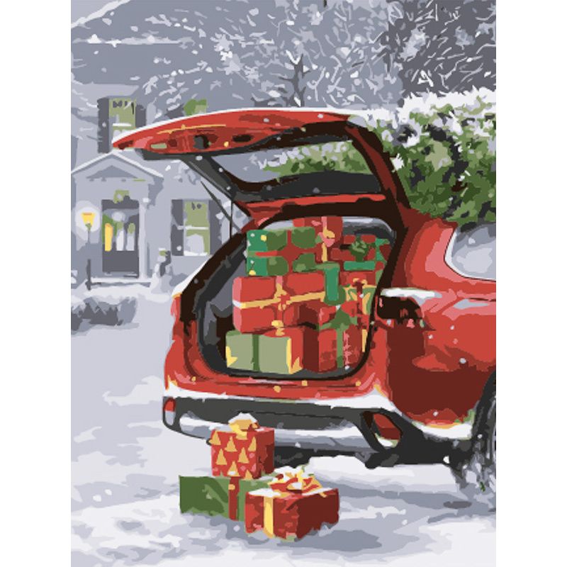 Картина за номерами Strateg ПРЕМІУМ Машина з подарунками розміром 30х40 см (SS6820)