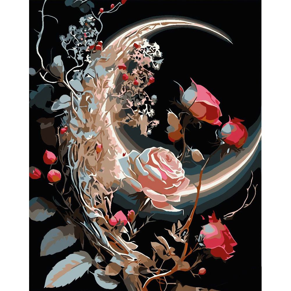 Картина за номерами Strateg ПРЕМІУМ Місяць у трояндах на чорному фоні розміром 40х50 см (AH1004)