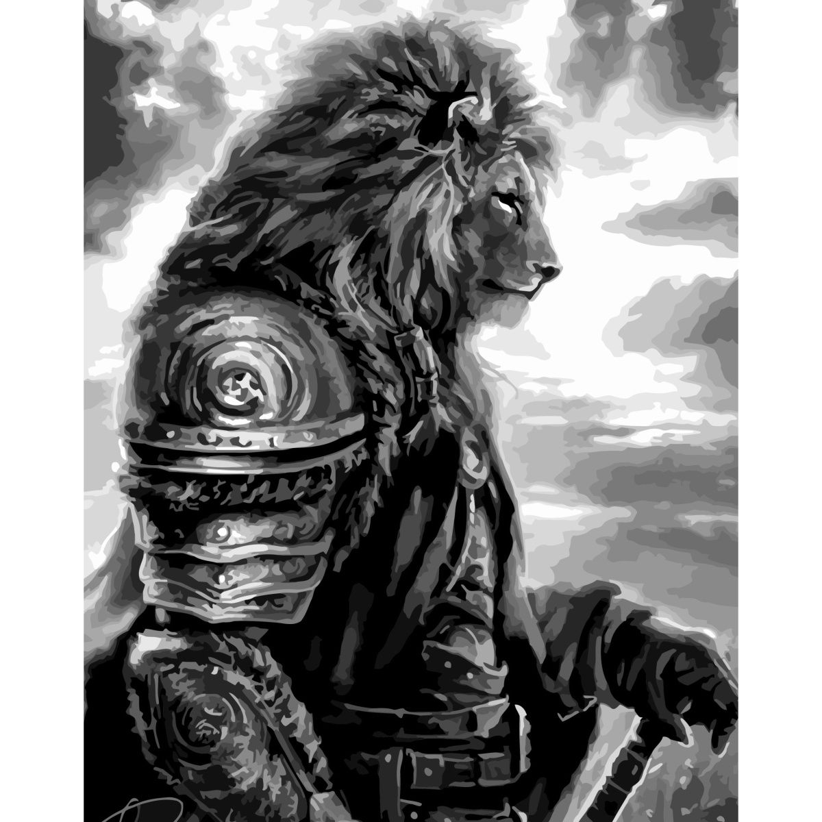 Картина за номерами Strateg ПРЕМІУМ Могутній лев з лаком розміром 40х50 см (SY6755)