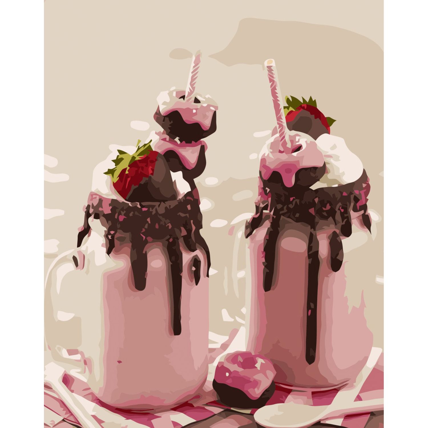 Картина за номерами Strateg ПРЕМІУМ Молочний коктейль із полуницею з лаком розміром 40х50 см VA-3341