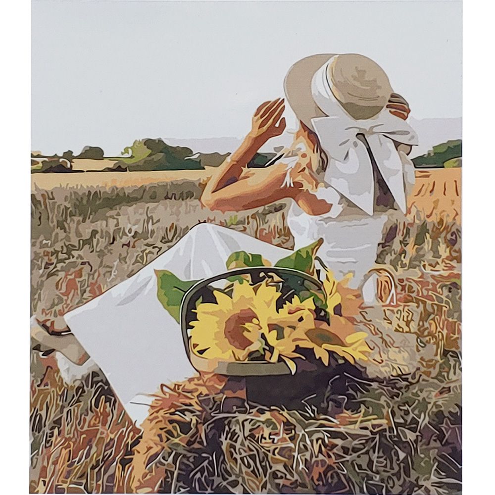 Картина за номерами Strateg ПРЕМІУМ На полі з соняшниками з лаком розміром 30х40 см (SS6644)