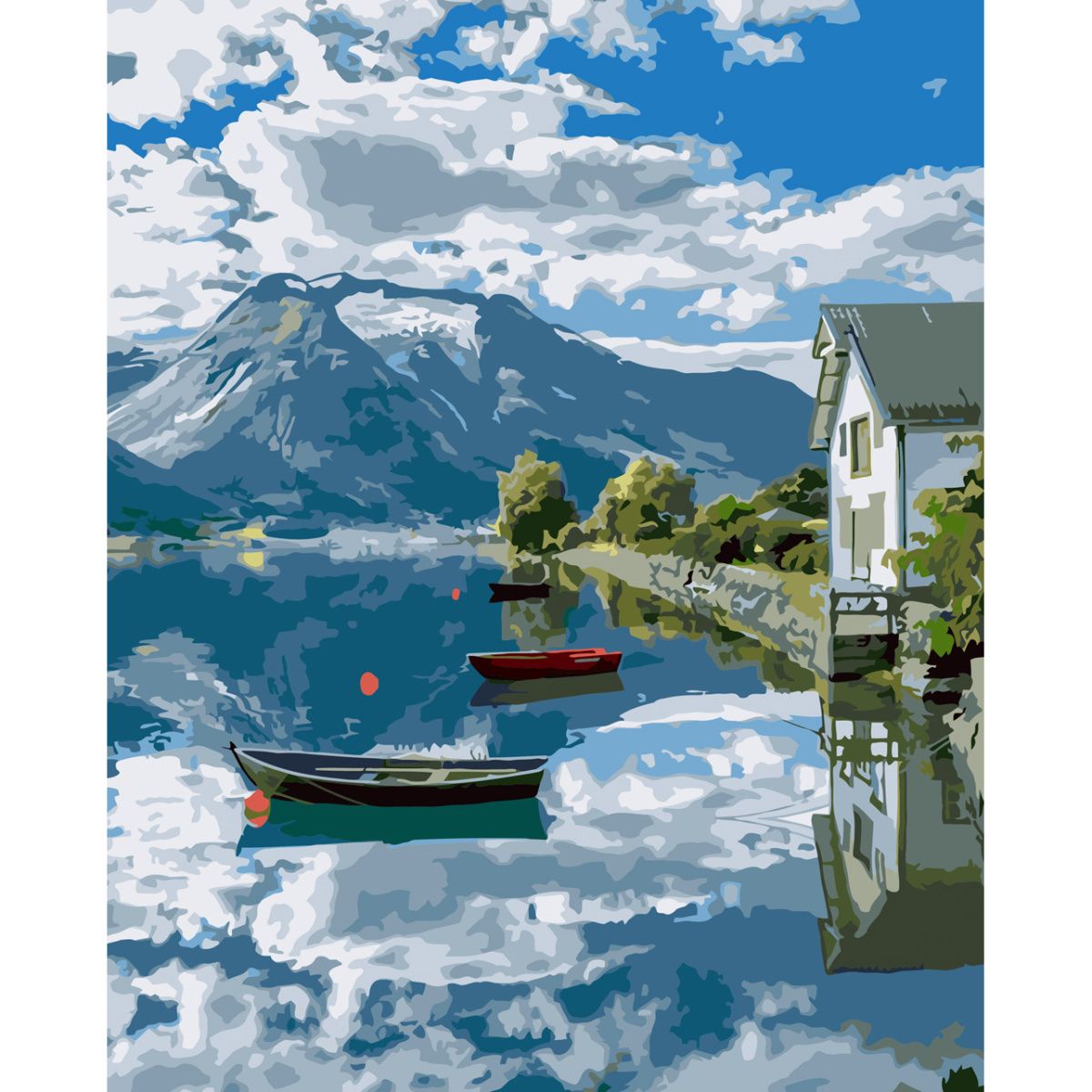 Картина за номерами Strateg ПРЕМІУМ Небо у дзеркалі води з лаком розміром 30х40 см (SS-6477)