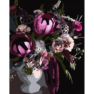 Картина за номерами Strateg ПРЕМІУМ Ніжний букет на чорному фоні розміром 40х50 см (AH1007)