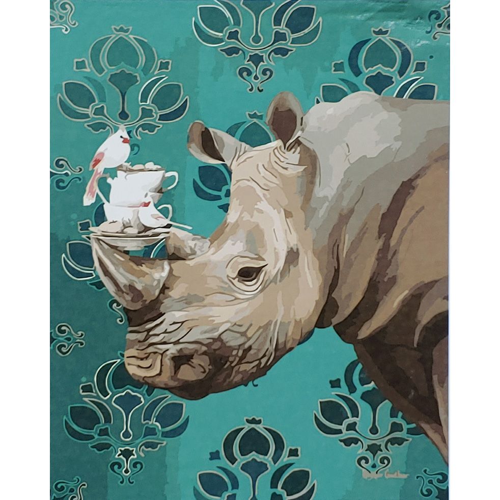 Картина за номерами Strateg ПРЕМІУМ Носоріг з пташкою з лаком розміром 40х50 см (SY6917)