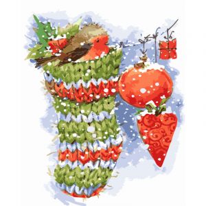 Картина за номерами Strateg ПРЕМІУМ Новорічна шкарпетка з лаком та з рівнем розміром 40х50 см (GS1559)