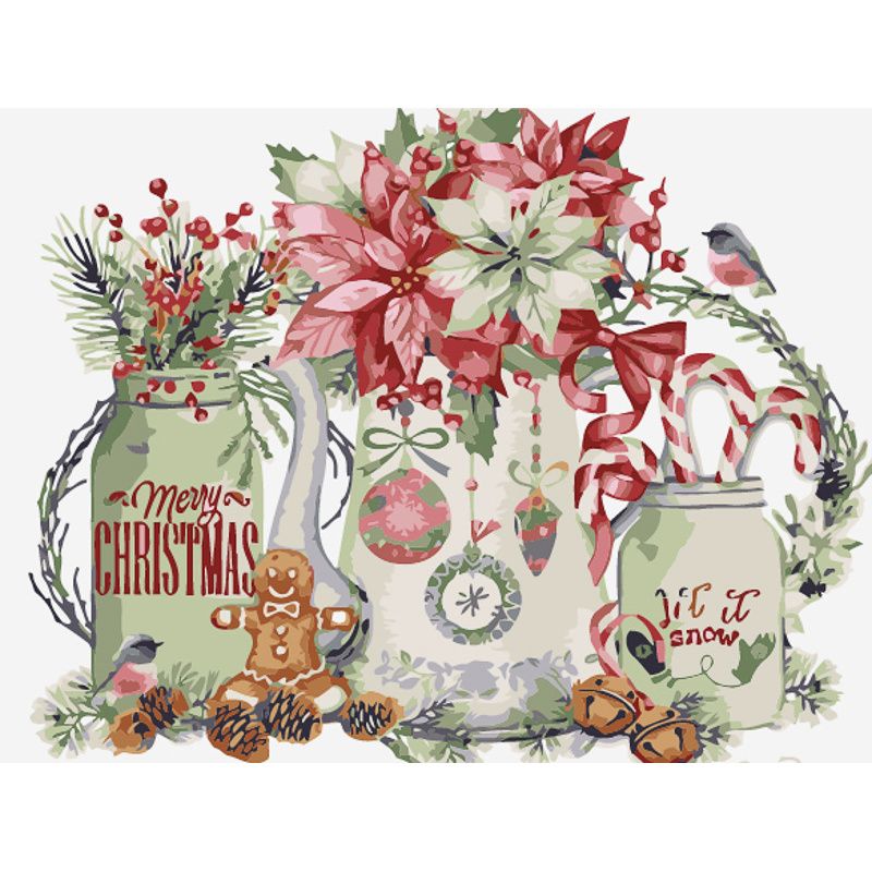 Картина за номерами Strateg ПРЕМІУМ Новорічні квіти та пряності розміром 30х40 см (SS6841)