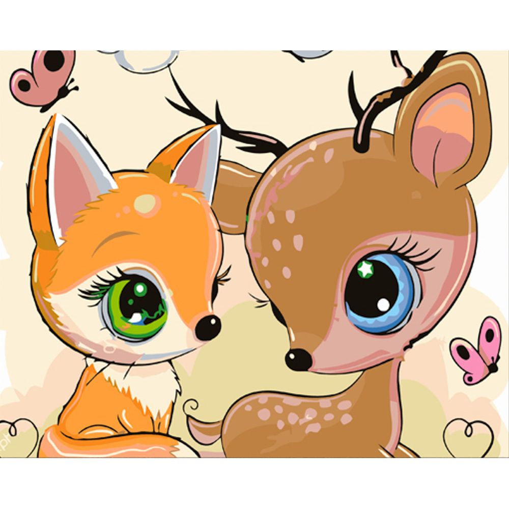 Картина за номерами Strateg ПРЕМІУМ Олень та лисичка з лаком розміром 30х40 см (SS6720)