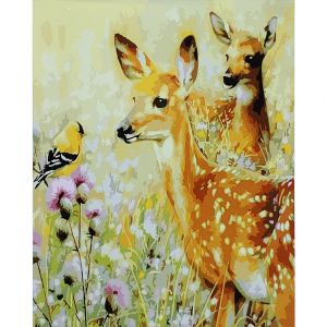 Картина за номерами Strateg ПРЕМІУМ Оленята Бембі з лаком розміром 40х50 см (SY6882)
