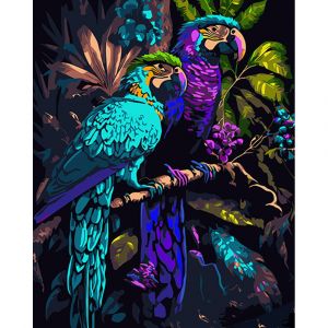 Картина за номерами Strateg ПРЕМІУМ Папуги на гілці на чорному фоні розміром 40х50 см (AH1012)