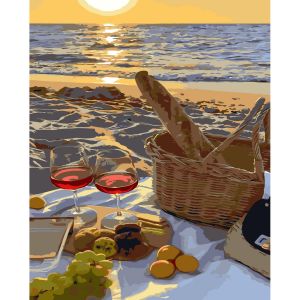 Картина за номерами Strateg ПРЕМІУМ Пікнік на березі моря з лаком розміром 30х40 см (SS-6483)