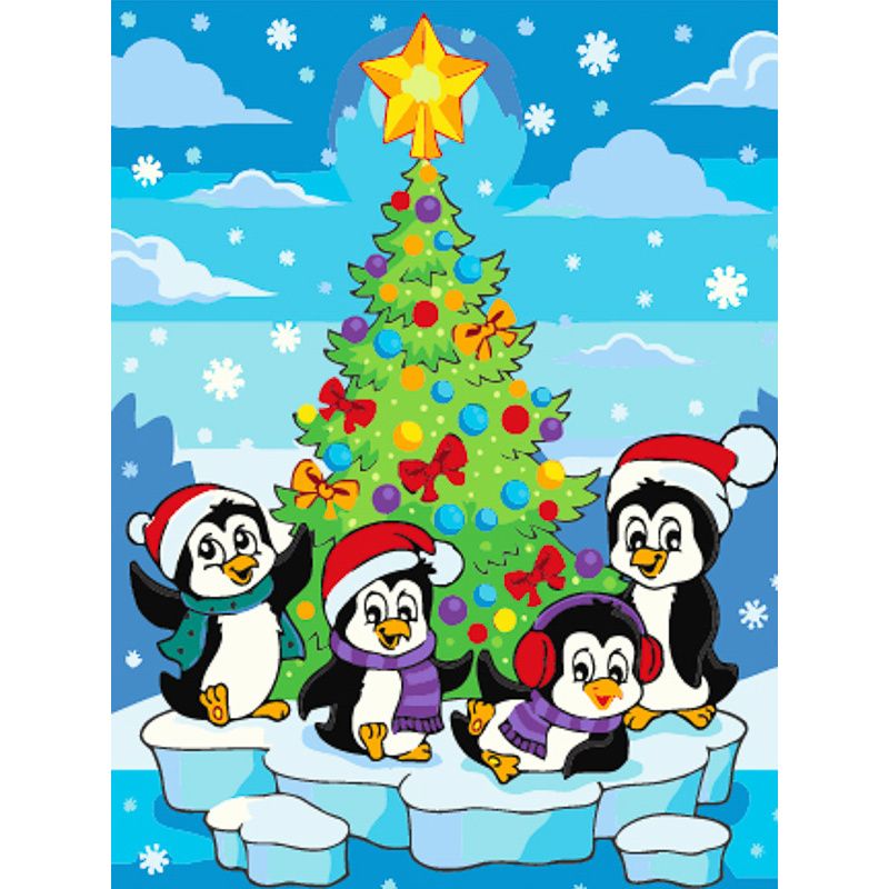 Картина за номерами Strateg ПРЕМІУМ Пінгвіни біля ялинки розміром 30х40 см (SS6835)