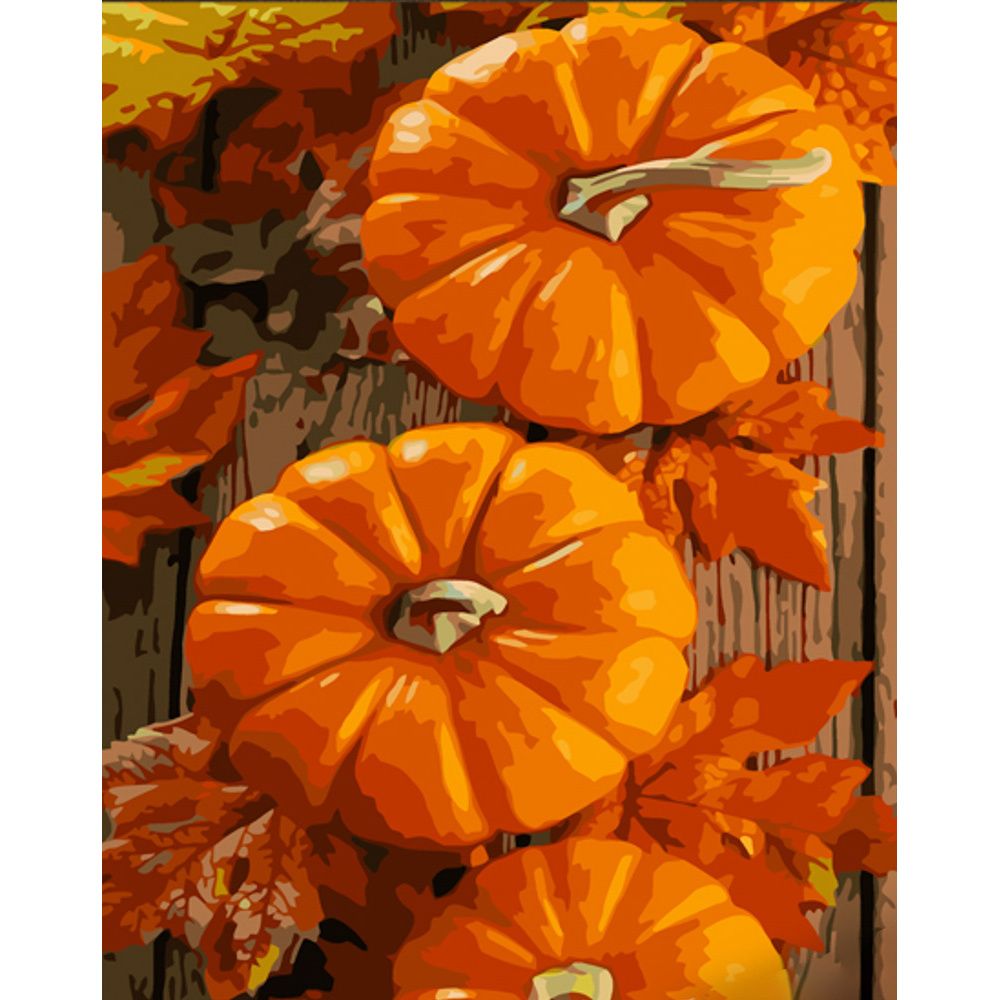 Картина за номерами Strateg ПРЕМІУМ Помаранчеві гарбузи з лаком розміром 30х40 см (SS6782)
