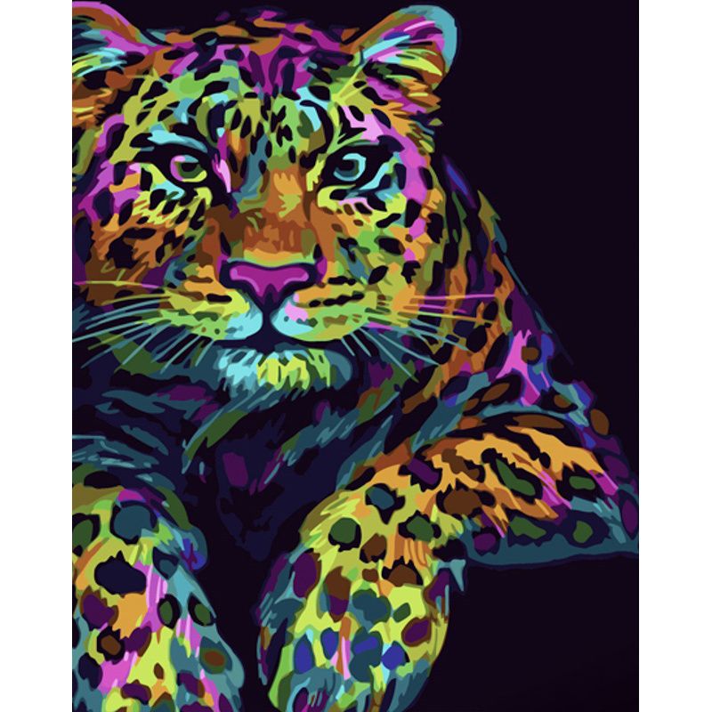 Картина за номерами Strateg ПРЕМІУМ Поп-арт леопард з лаком та з рівнем розміром 40х50 см (GS1541)
