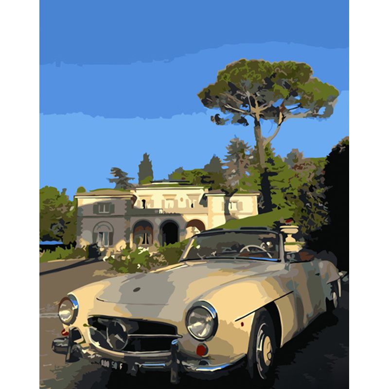Картина за номерами Strateg ПРЕМІУМ Ретро авто біля маєтку розміром 40х50 см (GS1287)