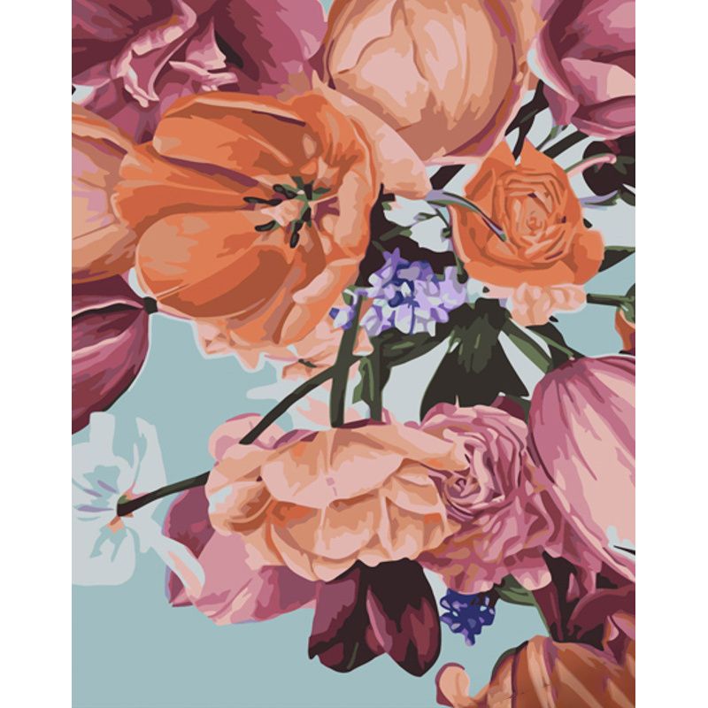 Картина за номерами Strateg ПРЕМІУМ Різноманітність тюльпанів з лаком та з рівнем розміром 40х50 см (GS1392)