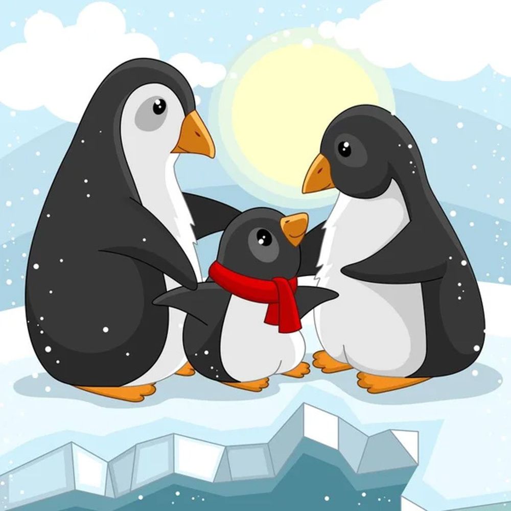 Картина за номерами Strateg ПРЕМІУМ Родина пингінів з лаком та з рівнем розміром 30х30 см (ES191)