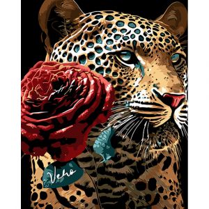 Картина за номерами Strateg ПРЕМІУМ Романтичний гепард на чорному фоні розміром 40х50 см (AH1031)