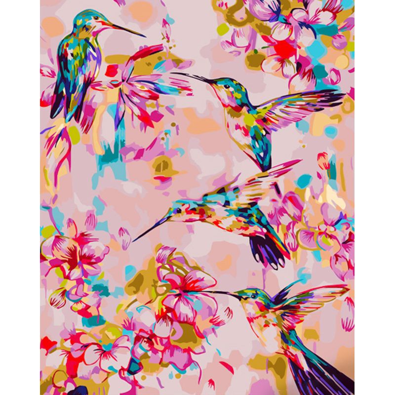 Картина за номерами Strateg ПРЕМІУМ Рожеві калібрі з лаком розміром 40х50 см (GS1088)