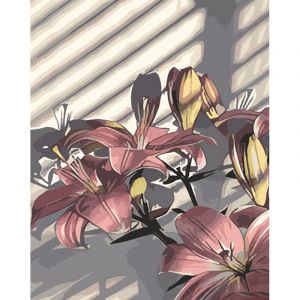 Картина за номерами Strateg ПРЕМІУМ Рожеві лілії з лаком розміром 40х50 см (GS857)