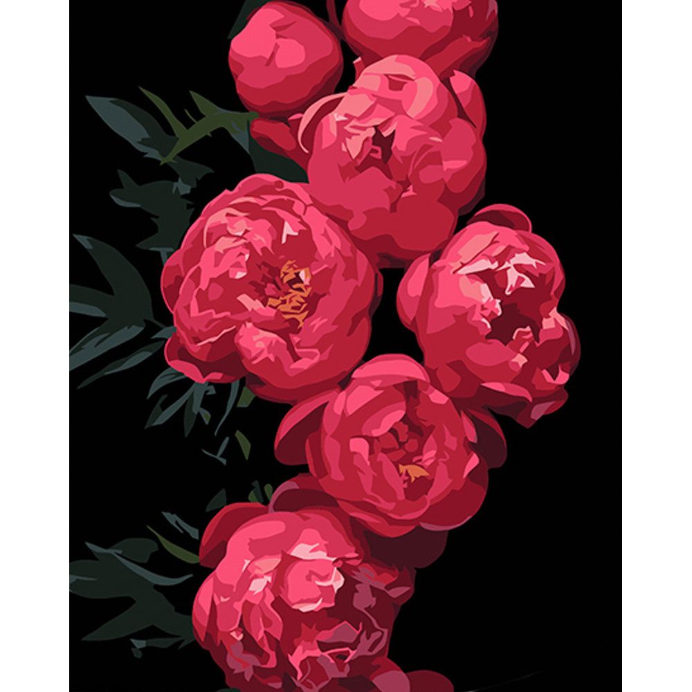 Картина за номерами Strateg ПРЕМІУМ Рожеві півонії на чорному фоні розміром 40х50 см (AH1035)