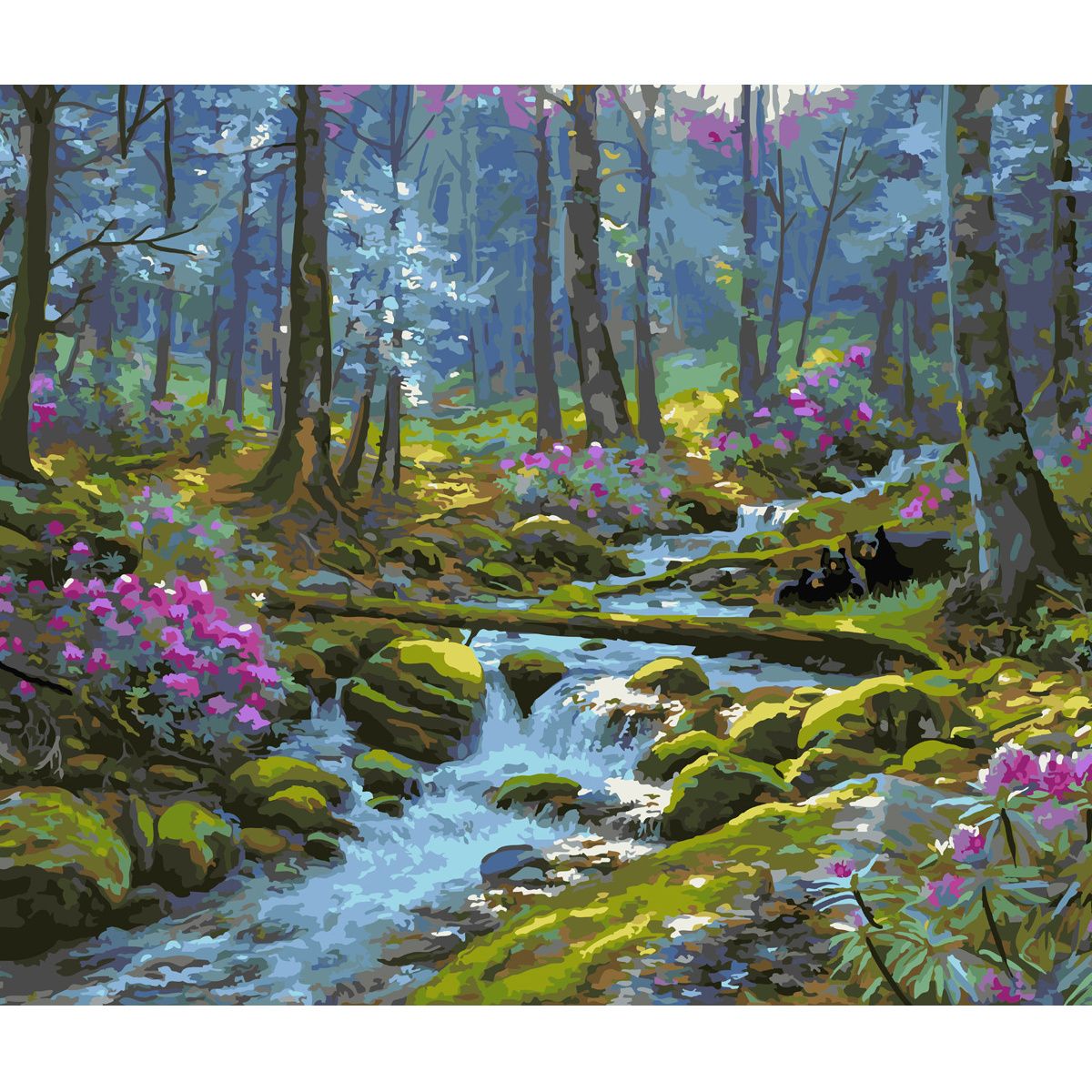 Картина за номерами Strateg ПРЕМІУМ Серед лісу з лаком розміром 40х50 см (SY6607)