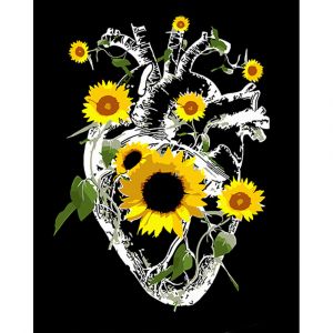Картина за номерами Strateg ПРЕМІУМ Серце серед соняхів на чорному фоні розміром 40х50 см (AH1028)