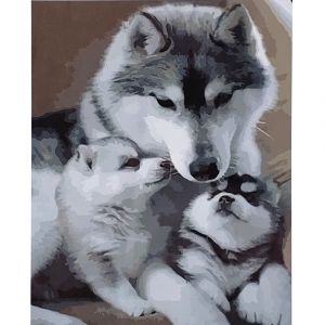 Картина за номерами Strateg ПРЕМІУМ Сім'я хаскі з лаком розміром 40х50 см (SY6715)