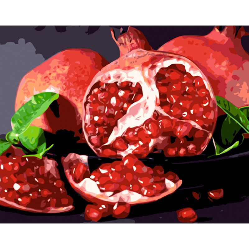 Картина за номерами Strateg ПРЕМІУМ Соковитий гранат з лаком розміром 40х50 см (GS1134)